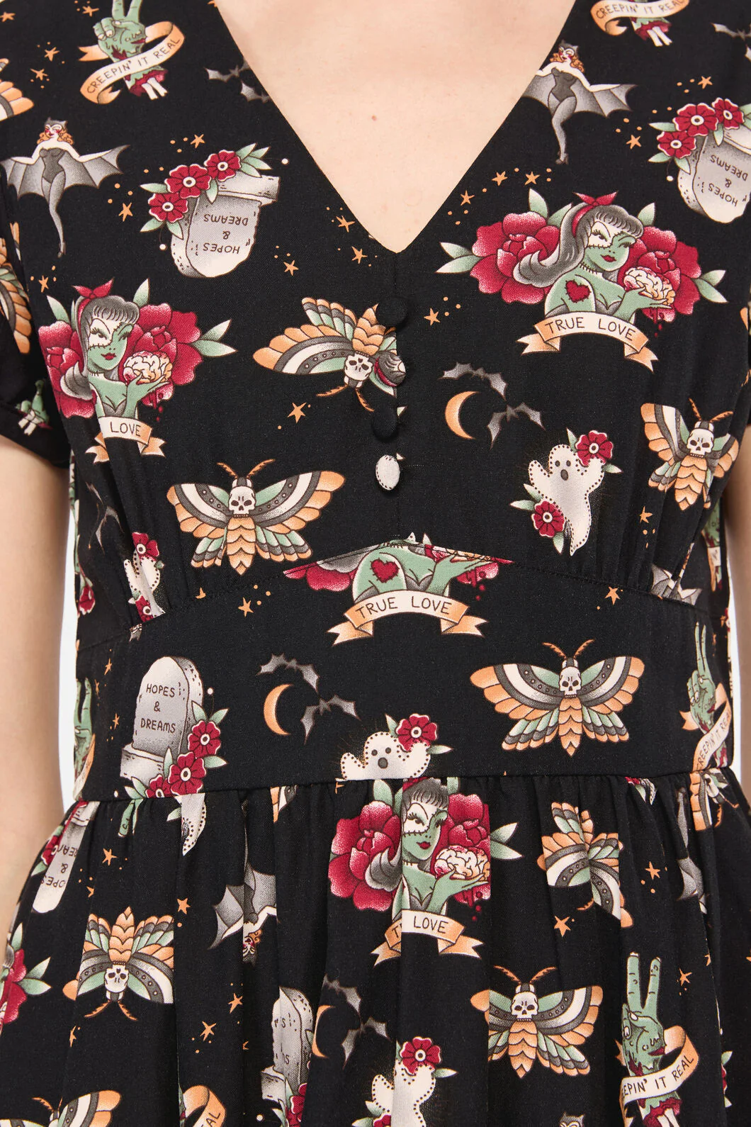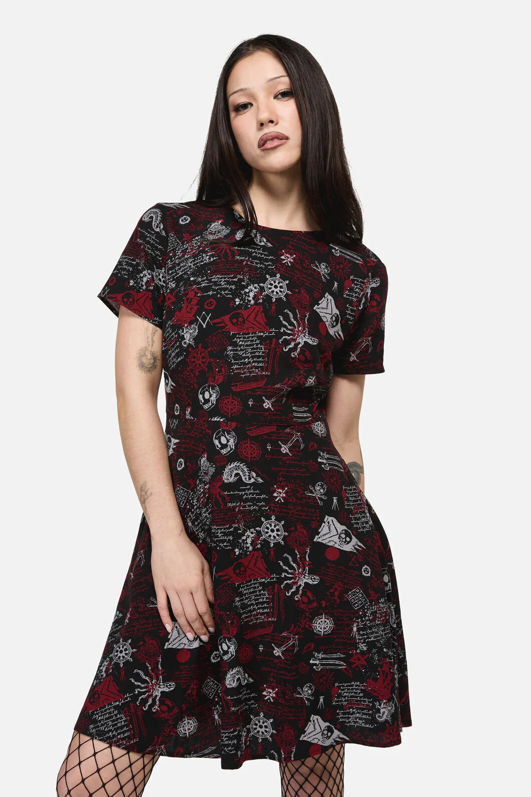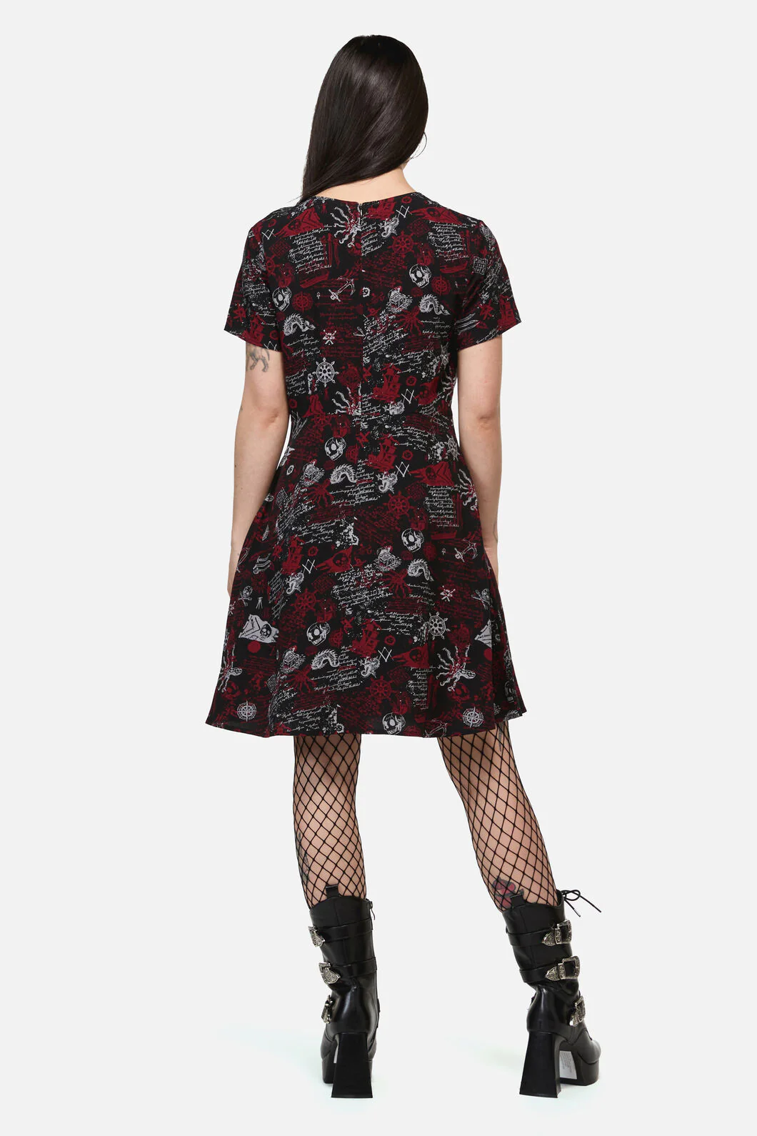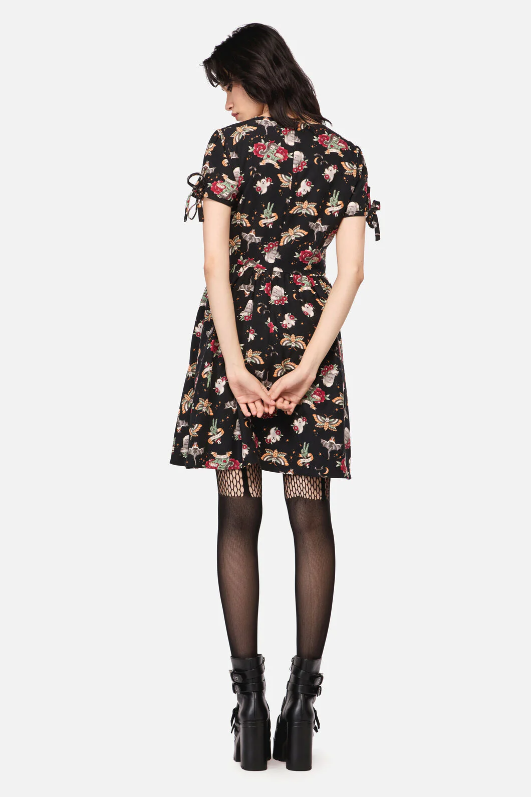 All Hallows Eve Tattoo Print Short Sleeve Dress