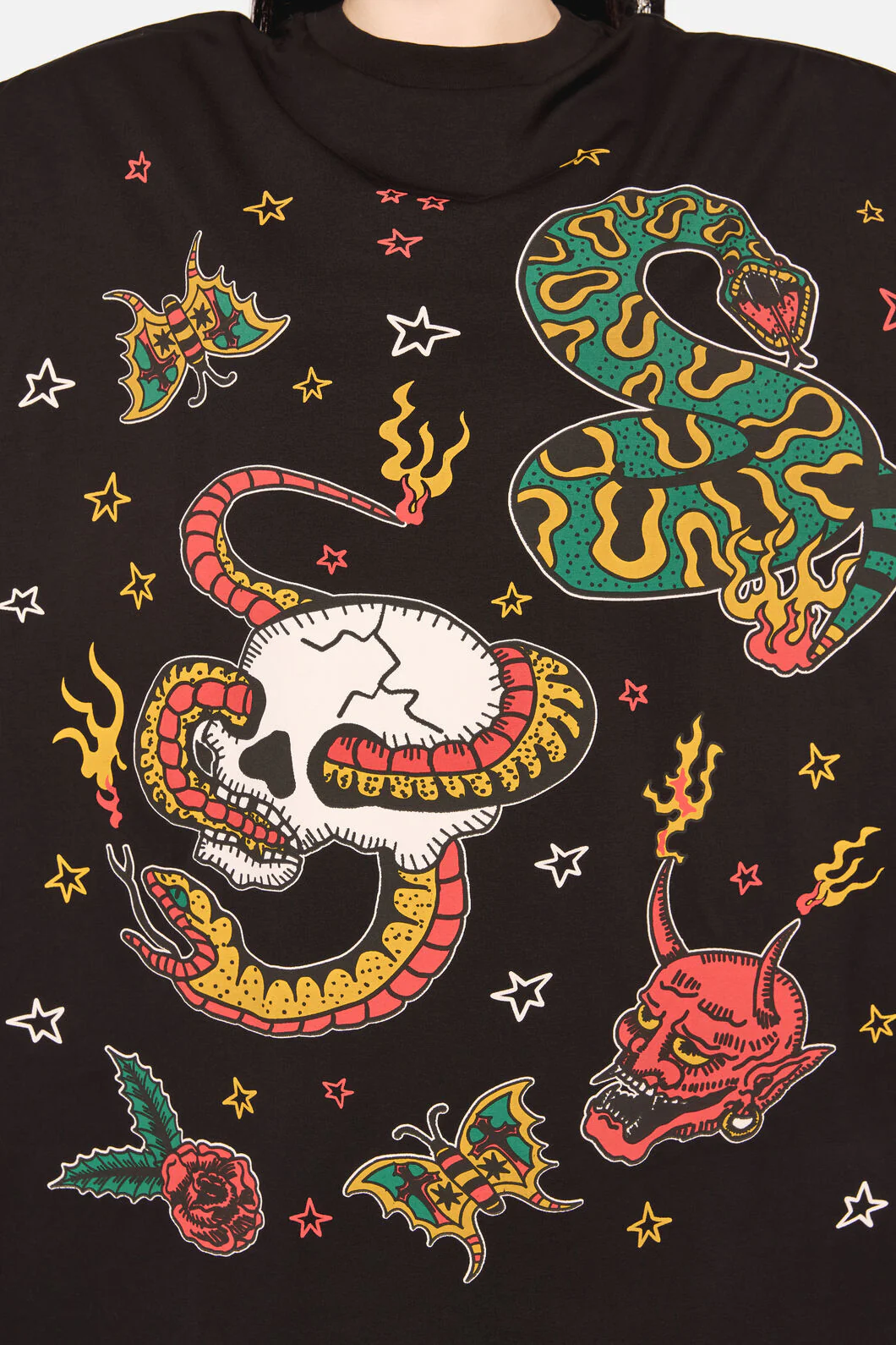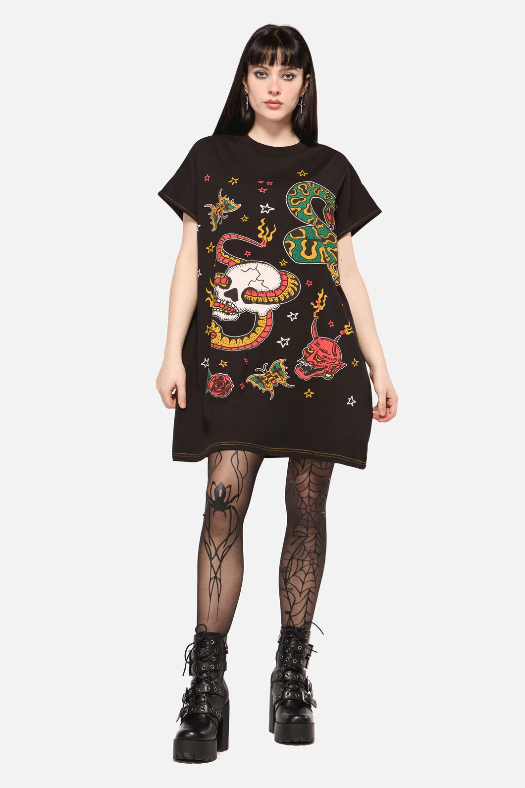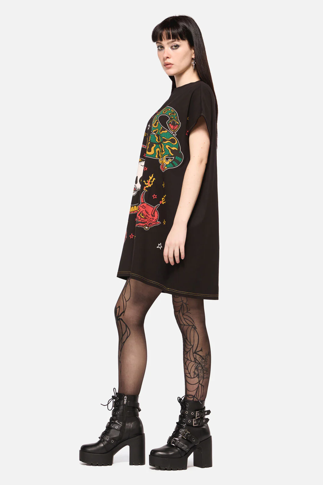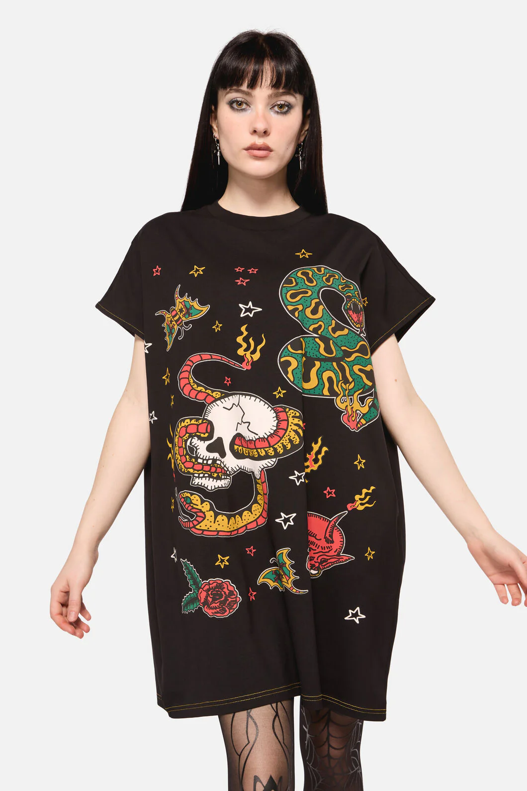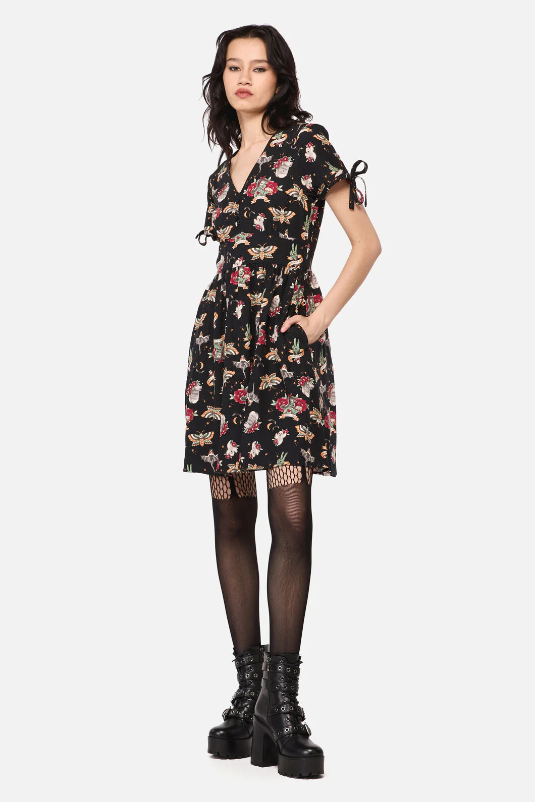 All Hallows Eve Tattoo Print Short Sleeve Dress