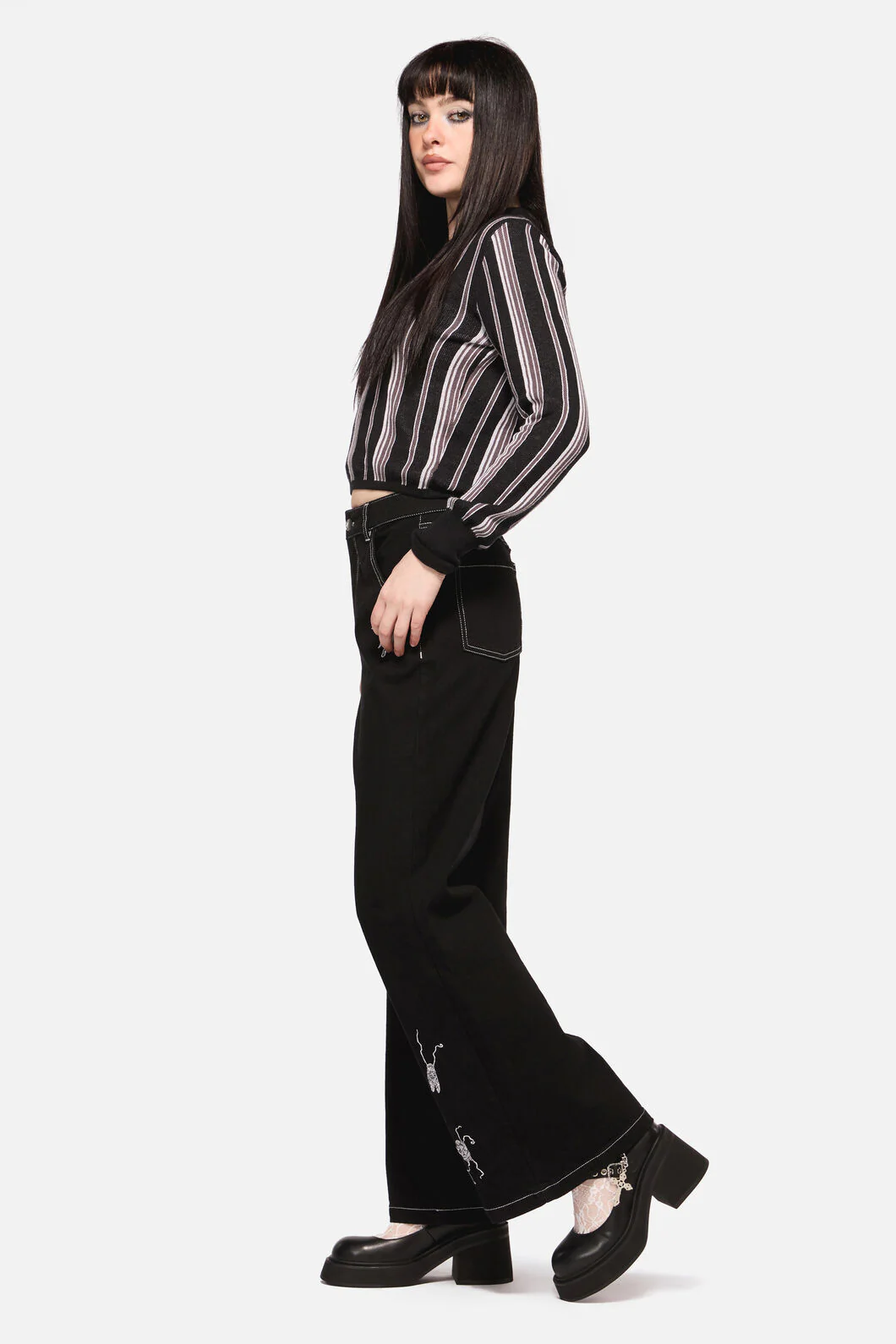 Dark Pieridae Embroidered Wide Leg Jean