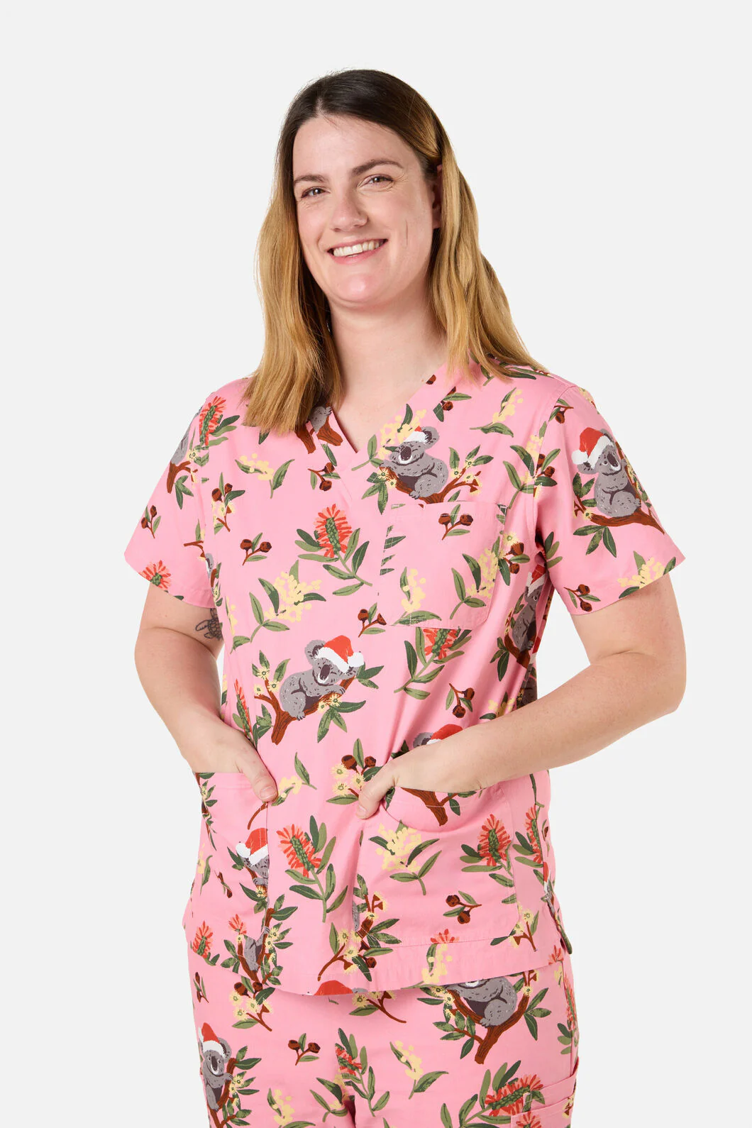 Christmas Koala Pink Scrub Set