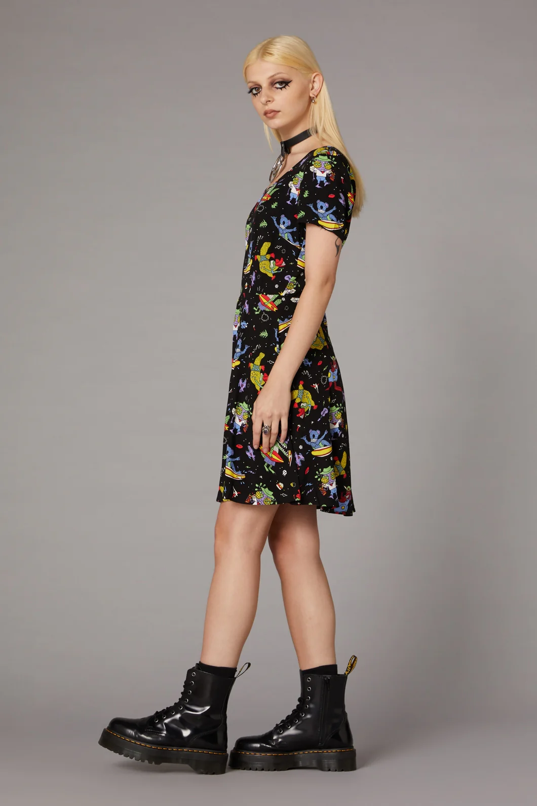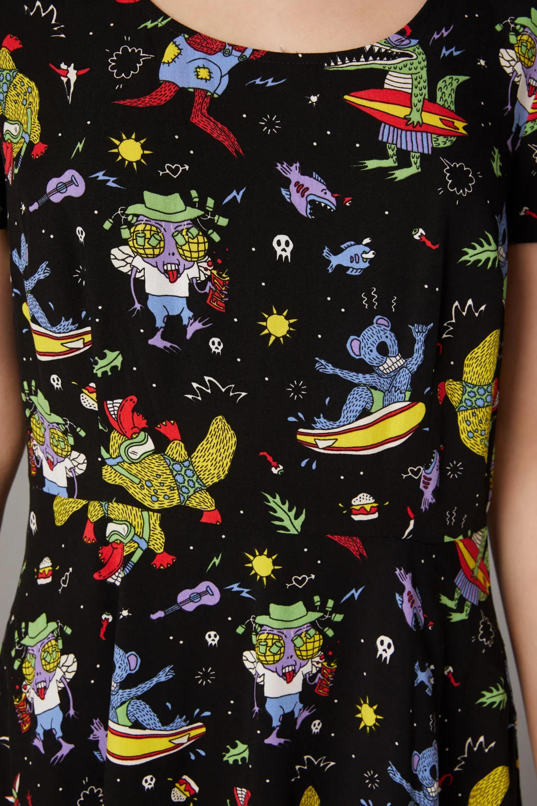 Surfing Creatures Print Dress
