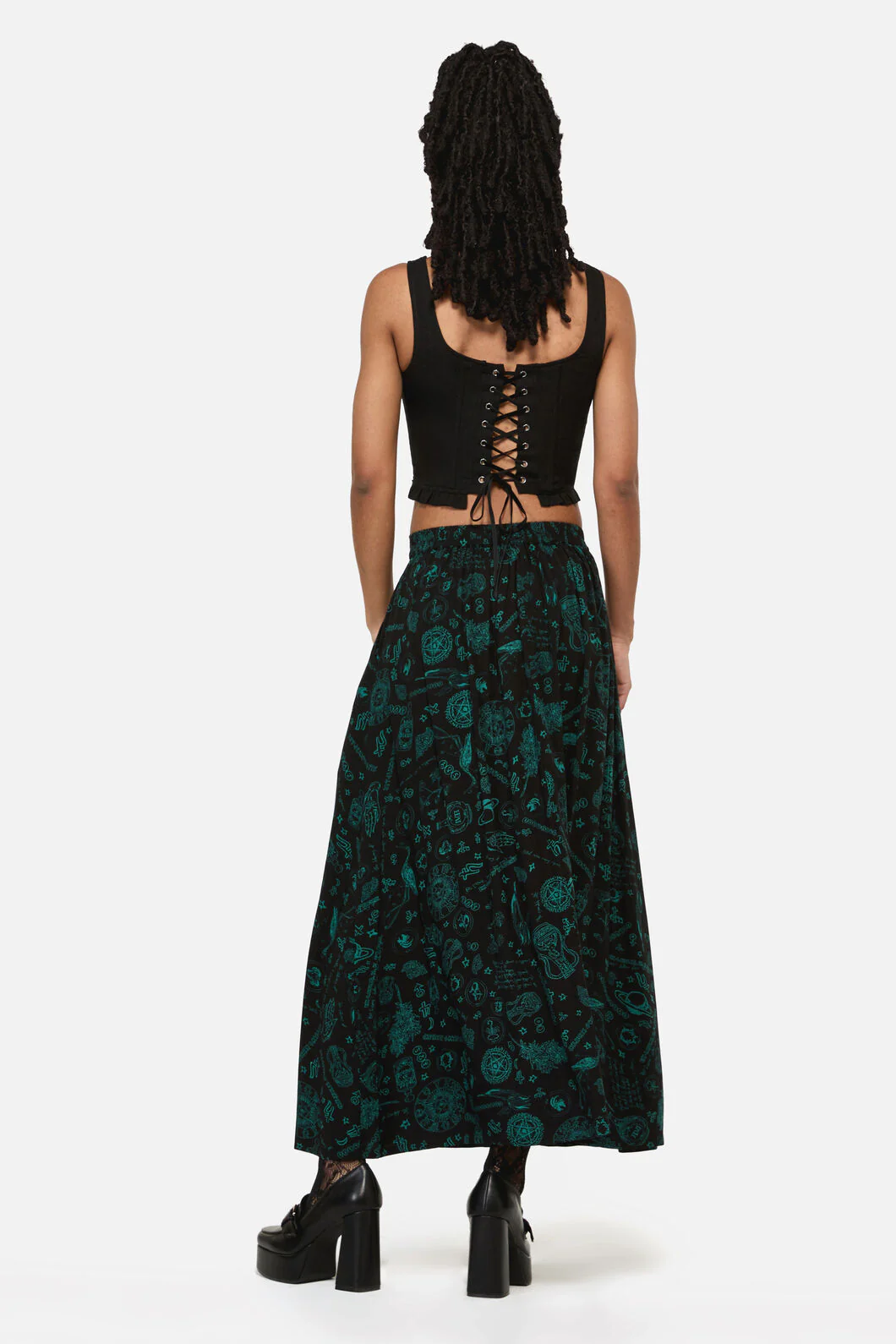 Spellbook Goth Print Midi Skirt