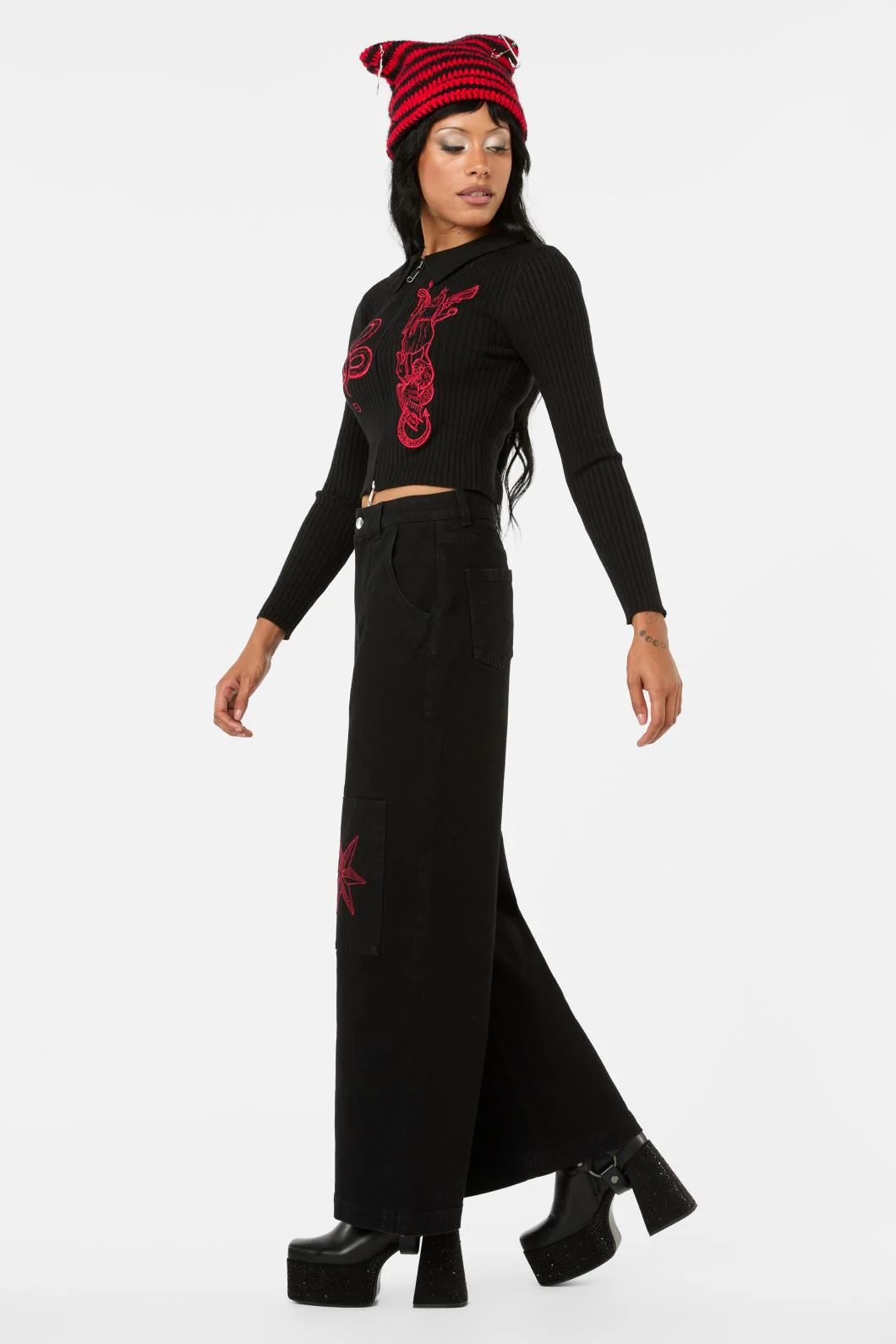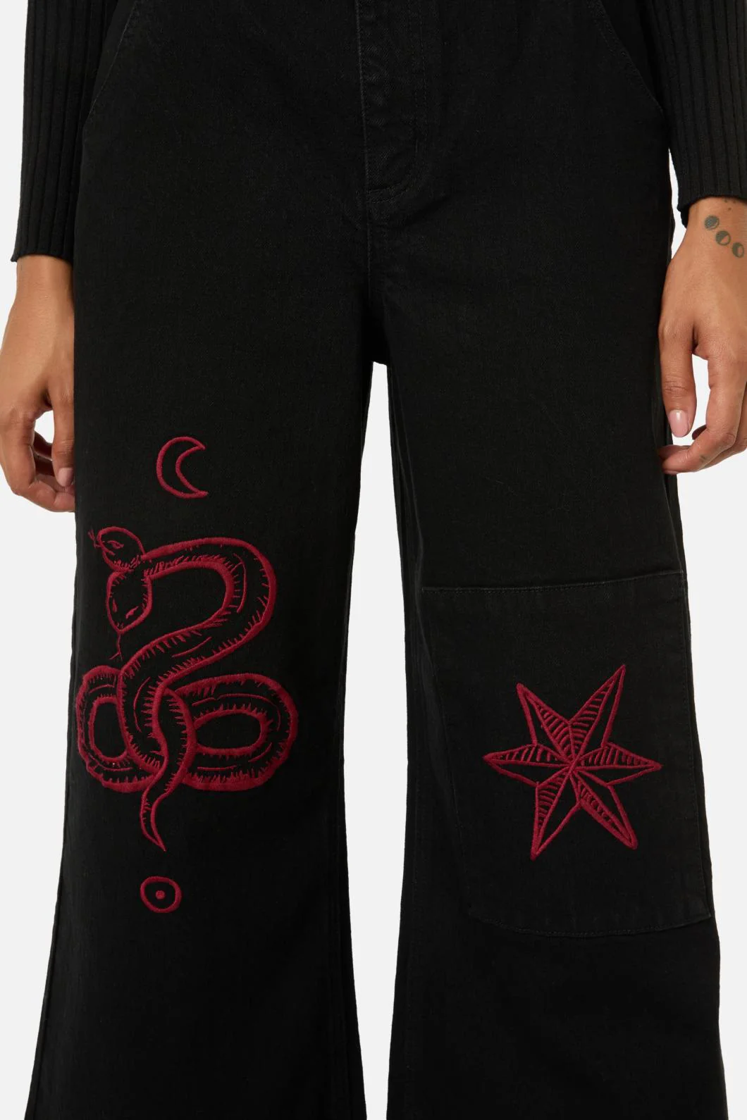 Dark Pieridae Embroidered Wide Leg Jean