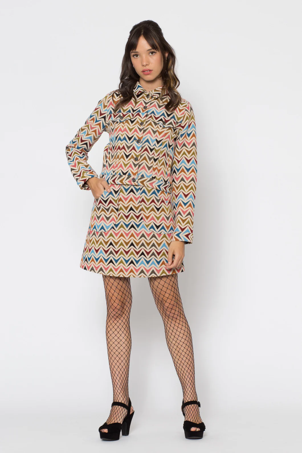 Warped Geo Print Jacket