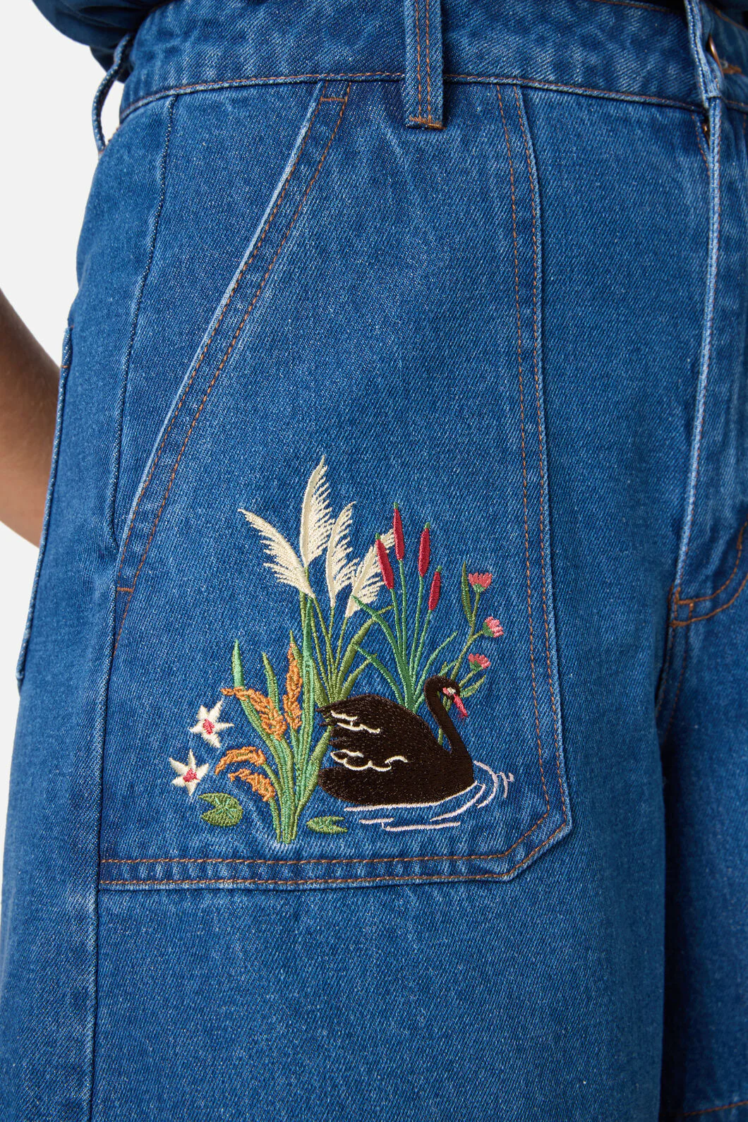 Swan Embroidered Denim Short