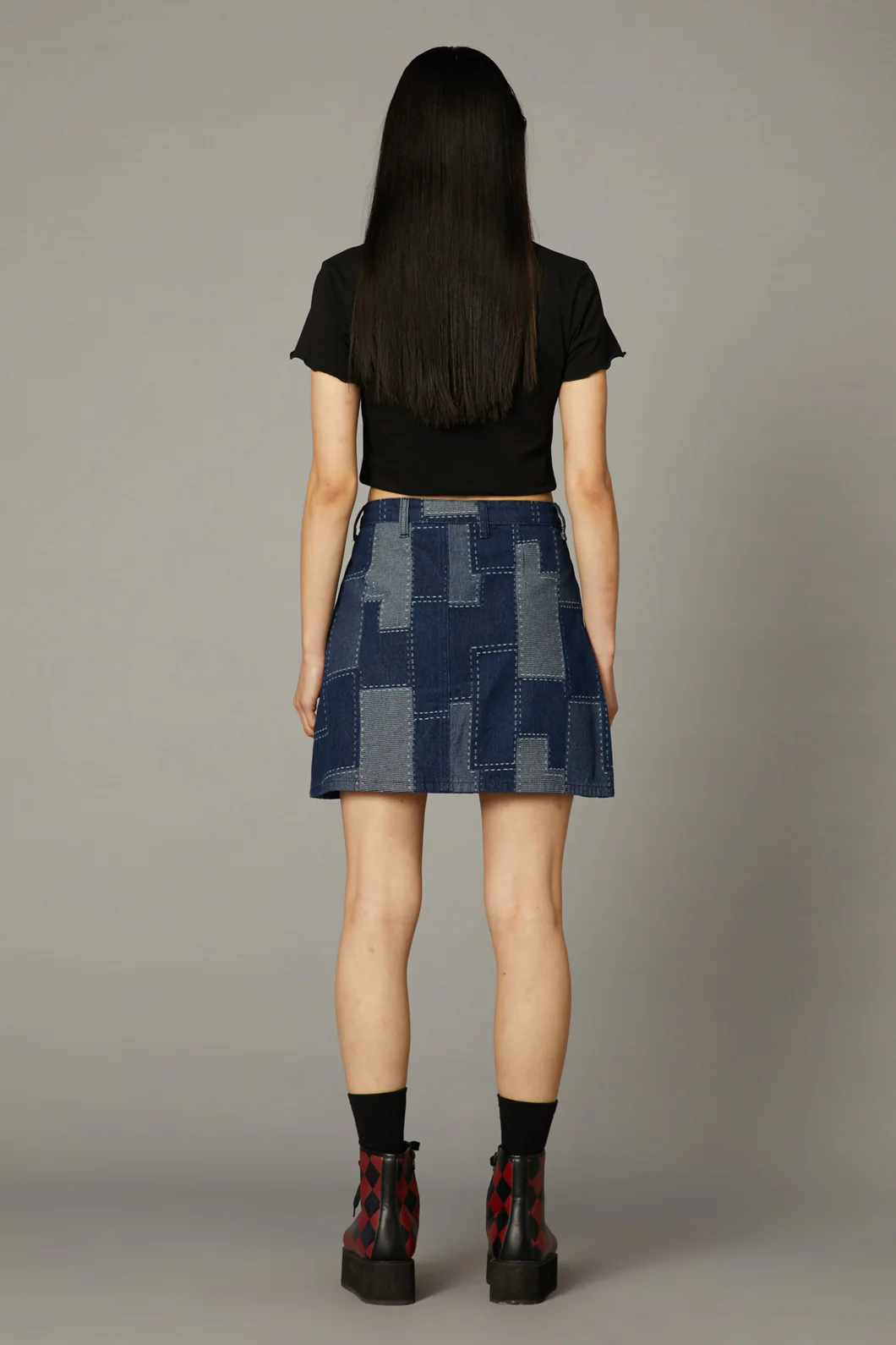Patchwork Denim Skirt