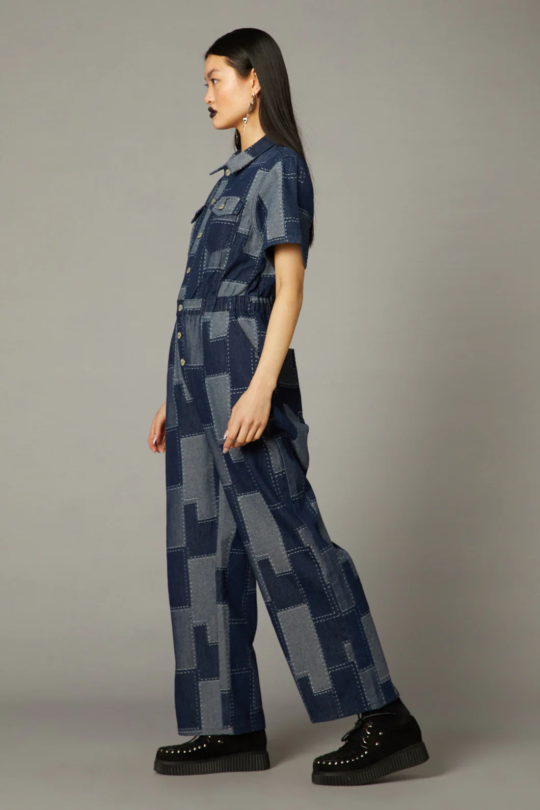 Patchwork Denim Boilersuit